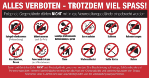 um die Veranstaltung für alle Beteiligten so sicher und reibungslos wie möglich zu gestalten, bitten wir die Besucher sich an folgende Bestimmungen zu halten: